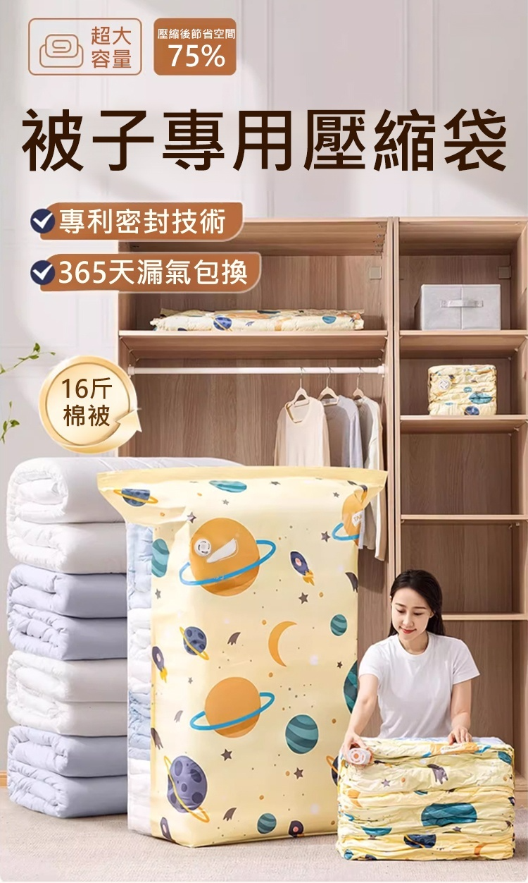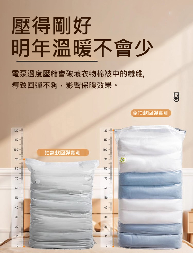 【抗菌升級】快速排氣 釋放70%空間,換季衣物 輕鬆收納,可反復使用10年